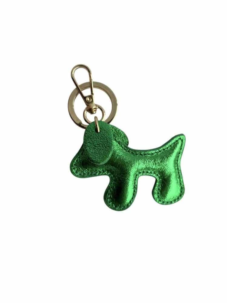 Bag charm med lille hund, der kan bruges alene eller sammen med andre bag charms.