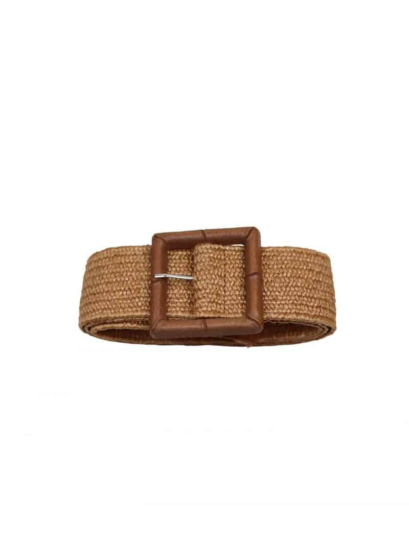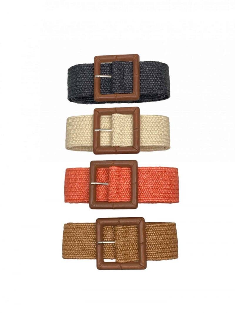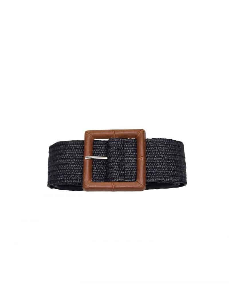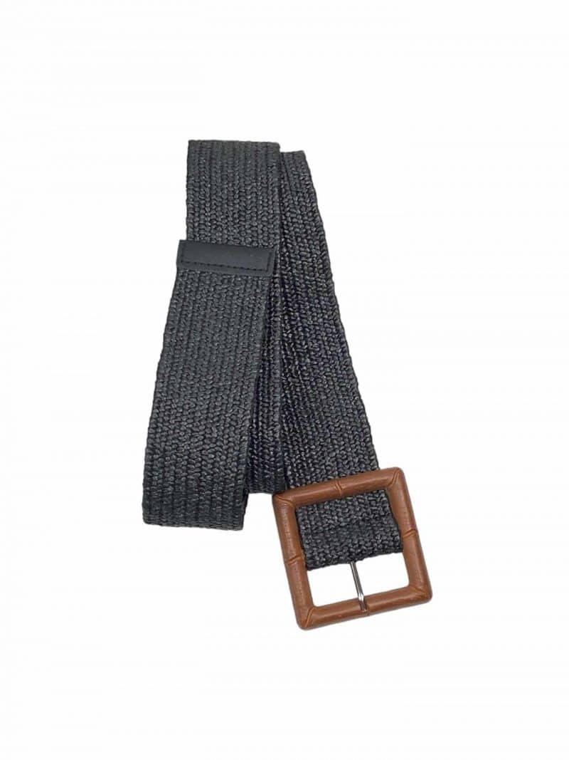 Bredt elastikbælte med firkantet spænde. Bæltet er uden huller og det firkantede spænde, giver bæltet et mere råt udtryk.