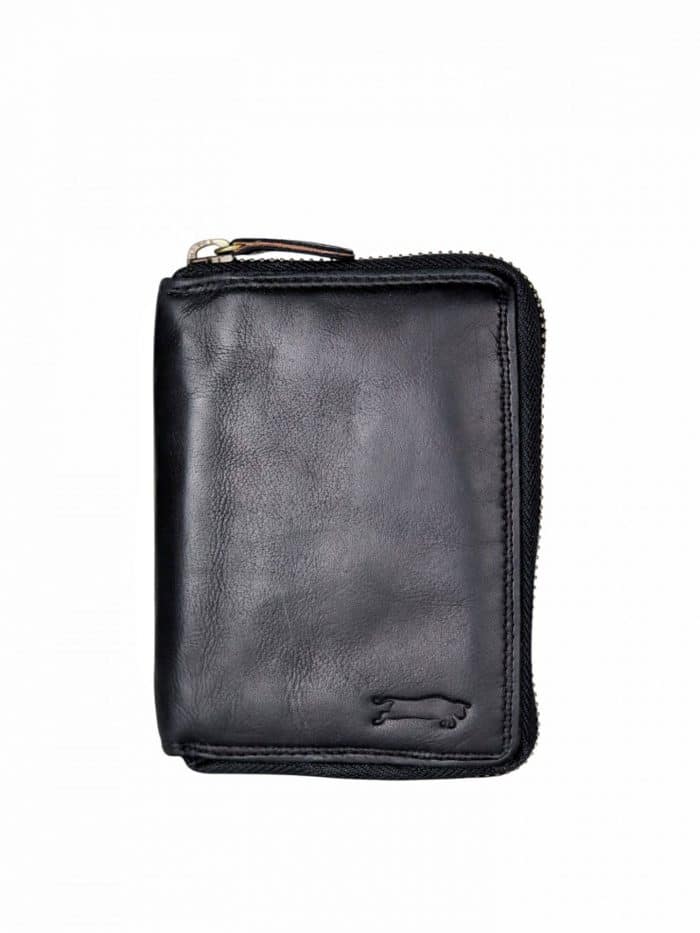 Læderpung med lynlås til at lukke den med