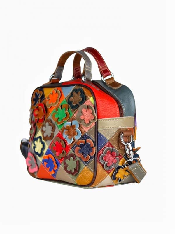 Multifarvet, lille blomstertaske i flot italiensk læder.