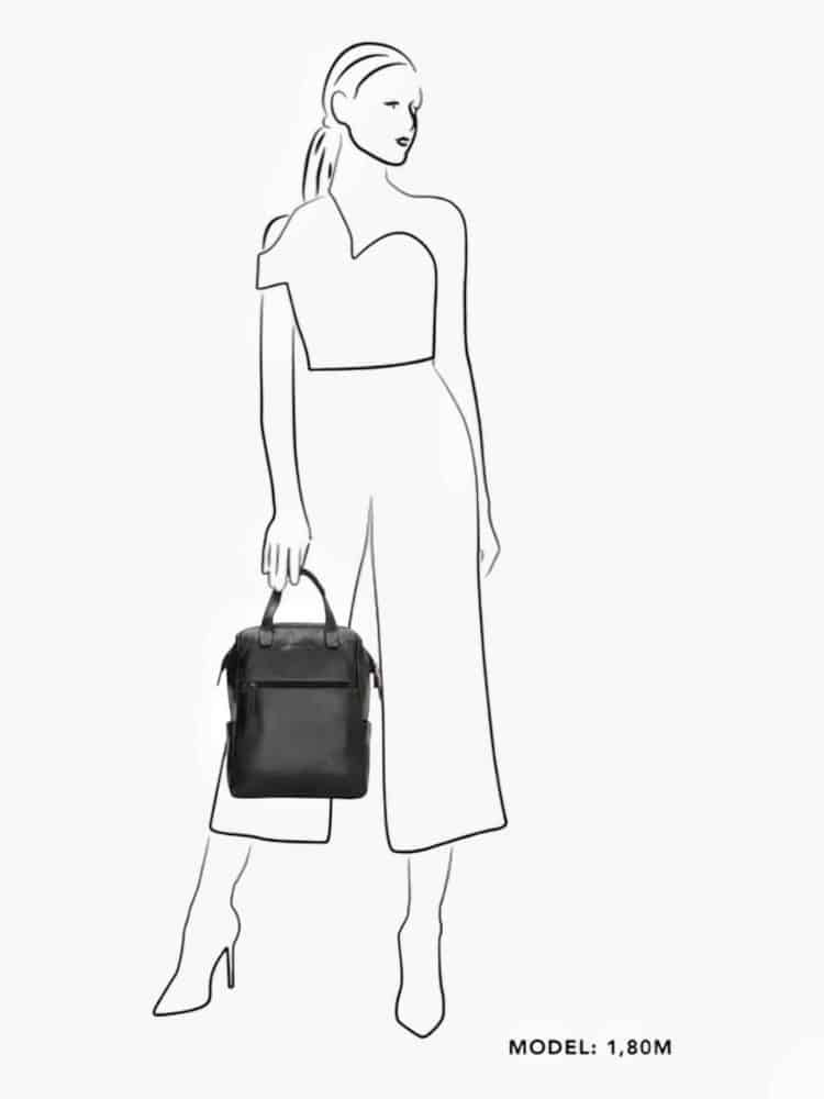 Rygsæk med bøjleåbning, der gør åbningen på tasken størrel, så det er nemt at se ned i tasken.